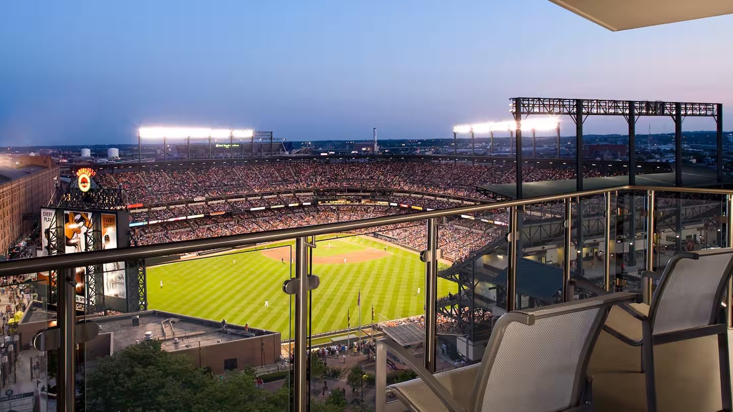 Located just 30 steps from Oriole Park at Camden Yards, Hilton Baltimore Inner Harbor offers guest rooms with stadium views and ten hospitality suites overlooking the ballpark. For the optimal game-day experience, book the one-bedroom balcony suite with a home plate view — you can watch the action from a private balcony without ever setting foot inside.