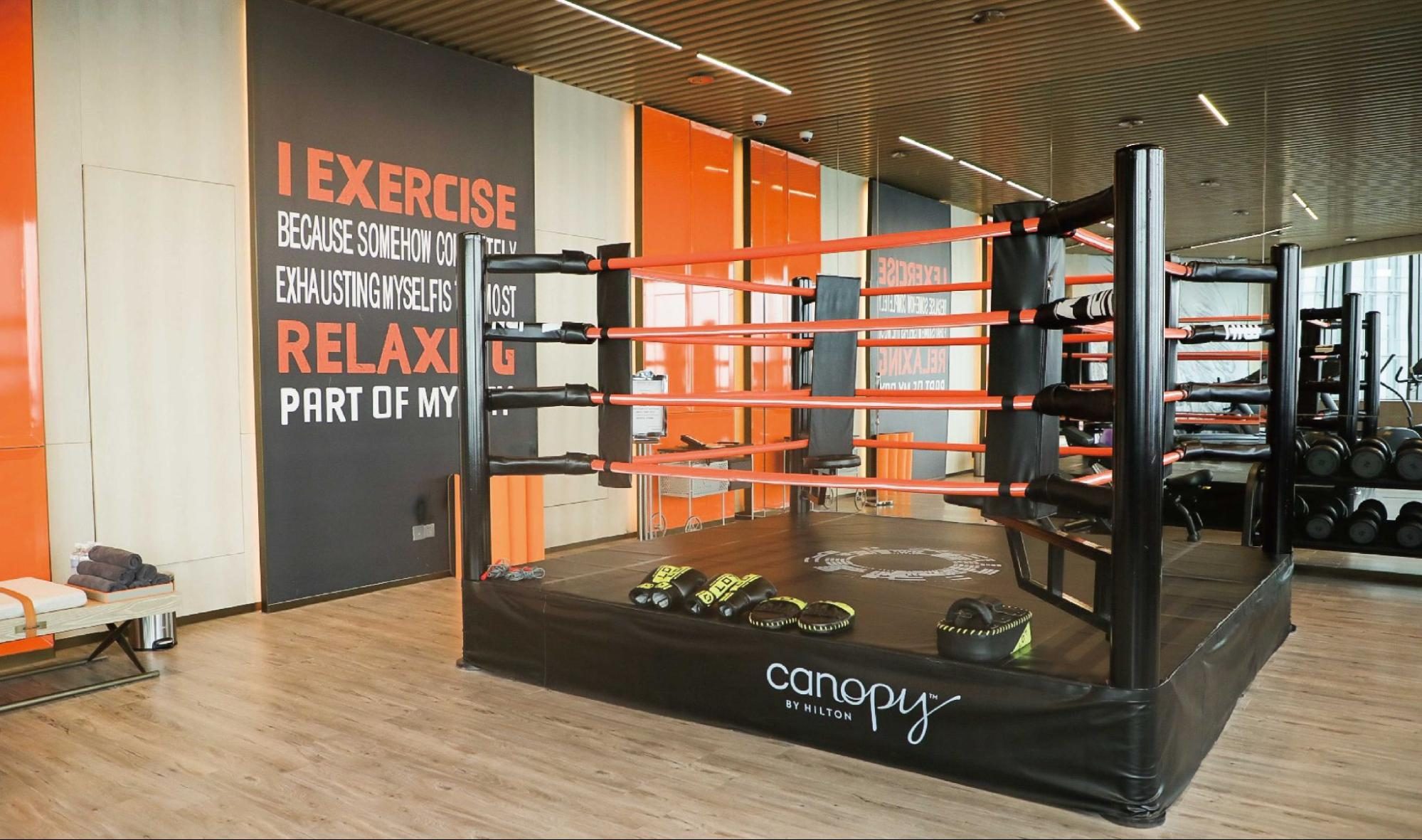 If boxing is your thing, head to the Canopy by Hilton Chengdu City Centre’s 32nd floor. Besides views of the city skyline, dumbbells and cardio machines, the 24-hour fitness center offers a boxing ring.