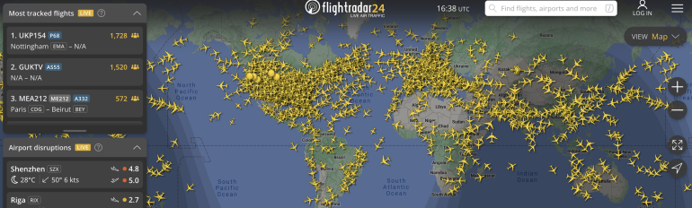 Flightradar24 is a website and app that provides users with detailed flight tracking information. What sets Flightradar24 apart is it has the largest ADS-B (Automatic Dependent Surveillance-Broadcast) network in the world, which is a system that shares an aircraft's location and flight data. With access to over 40,000 connected receivers to track flights, Flightradar24 can track over 200,000 flights per day.
