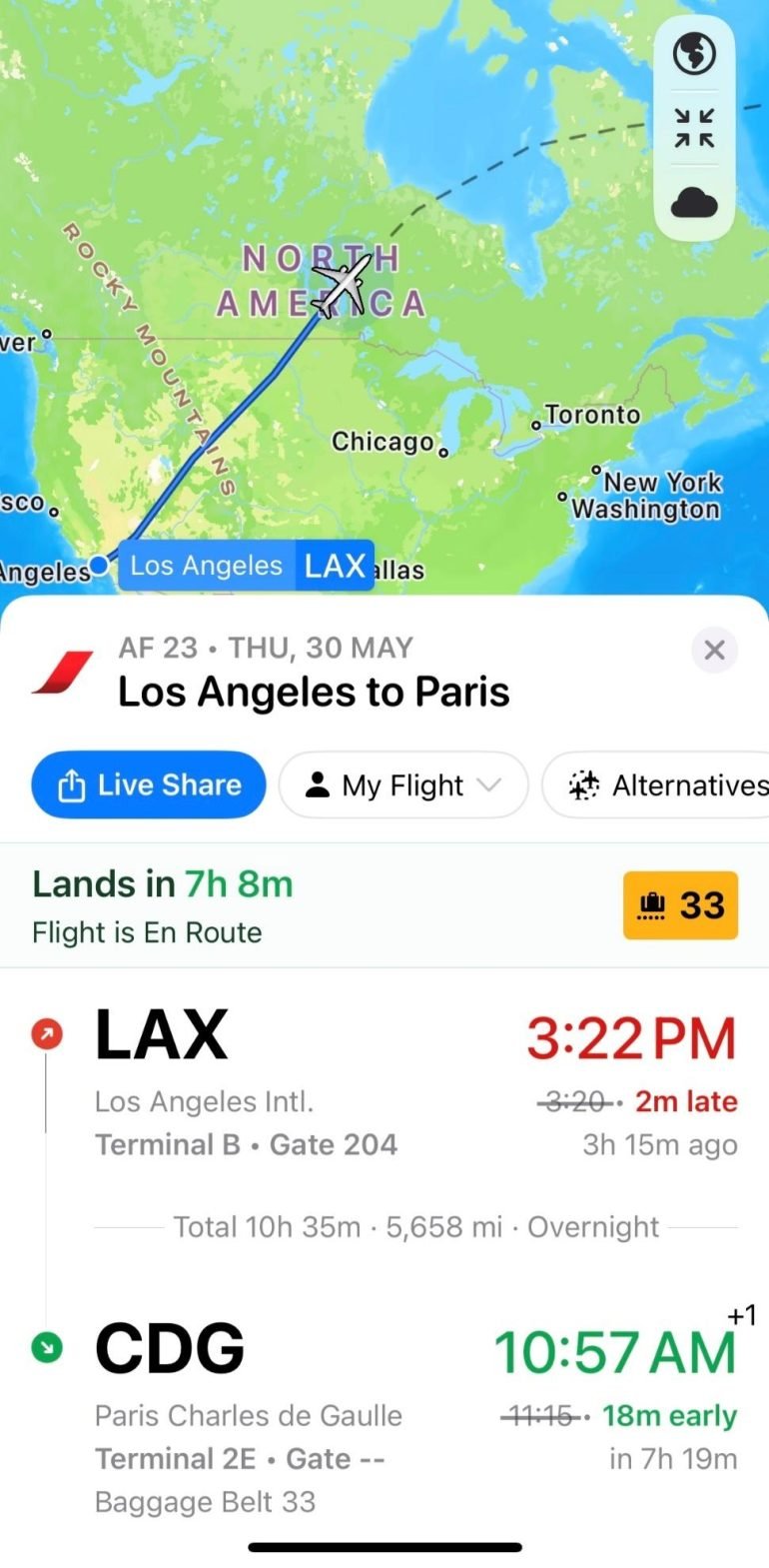 When you click on "Preview Flight," iMessage will pop up real-time flight tracking including departure time, estimated arrival time, landing terminal and baggage claim number.