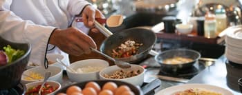 • Hot breakfast items like eggs, plus pastries and fresh fruit.