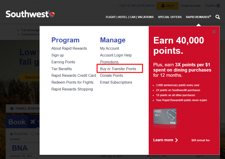 How to Buy Southwest Points