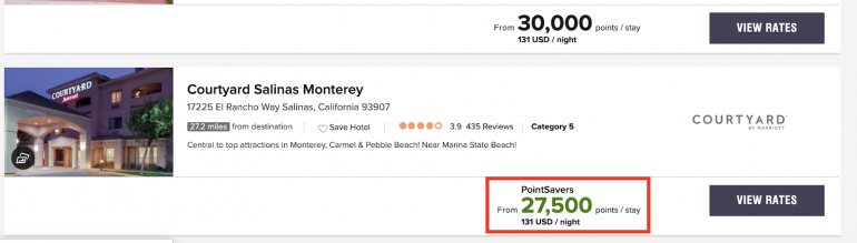 Marriott publishes a list of participating hotels and dates on the PointSavers page. You might also come across PointSaver hotels by searching for award stays. PointSaver rates are displayed in green: