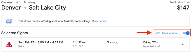 Instead of watching your flight like a hawk and checking its price every day, we recommend setting up a tracker on Google Flights to let you know when the cost of your flight drops.