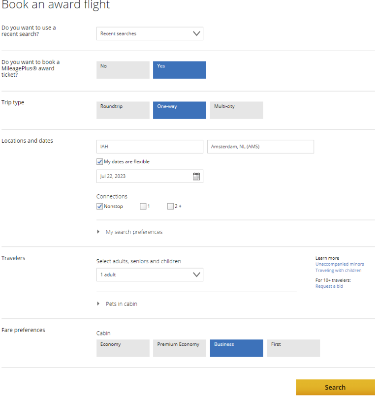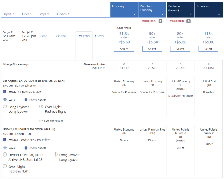 If you're searching for premium cabin awards, United may show "mixed cabin" results. That's where only part of the itinerary is in a premium cabin and other legs are in economy. However, you'll still be charged the business class award price for the whole trip.