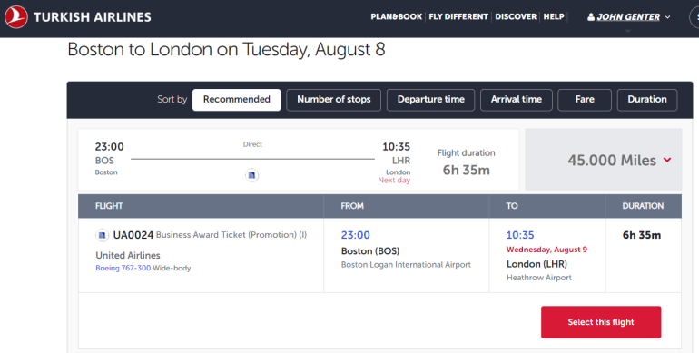 However, you can do much better through partners. For example, Turkish Miles&Smiles charges 45,000 miles each way for the same United business class award. If you don't have enough miles in your Miles&Smiles account, you can transfer in Citi ThankYou points, Capital One miles or Marriott Bonvoy points.
