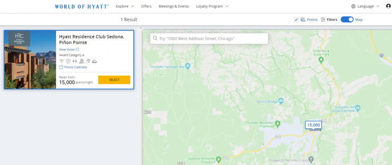 This brings up a world map that highlights the Hyatt hotels and resorts around the world. The map can also be turned off to search by destination. You can zoom in on a specific destination, use the search function in the upper left corner or narrow down your results with the filters. For Category 1-4 certificate stays, select categories 1, 2, 3 and 4 so that you don't waste time looking at ineligible properties.