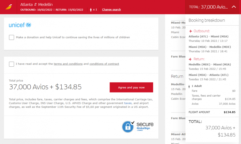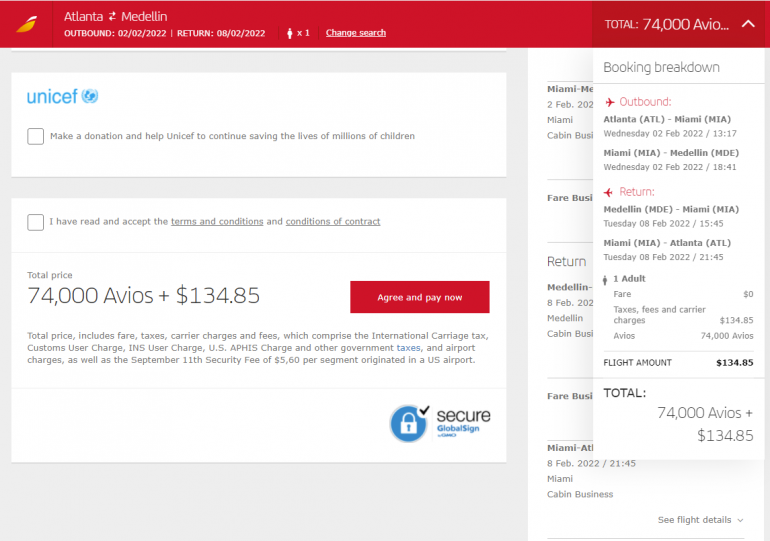 Now that Iberia prices each award flight separately, these connecting award itineraries cost a lot more. For example, an award from Atlanta to Medellin, Colombia, now prices at 37,000 Avios round-trip in economy or a whopping 74,000 Avios round-trip in business class. Both of those rates are a 61% increase over the previous rates.