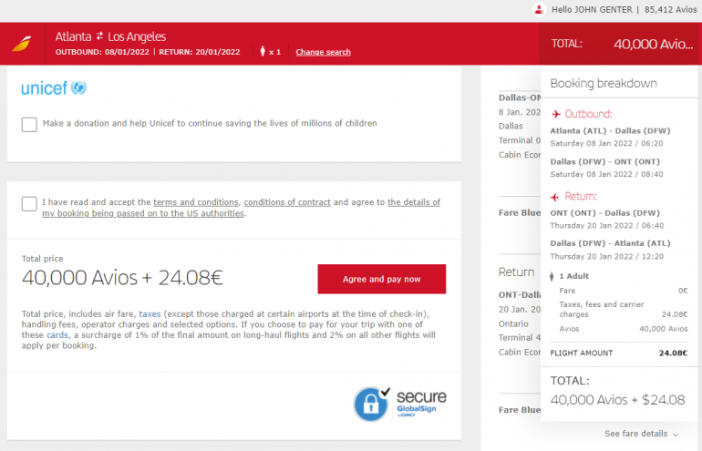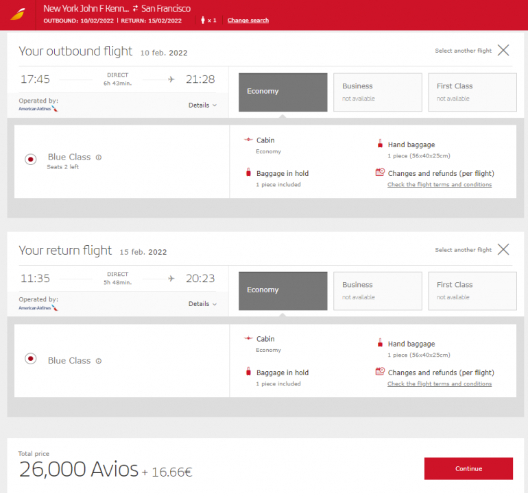 Now, the same itinerary costs 30,000 Avios round-trip: