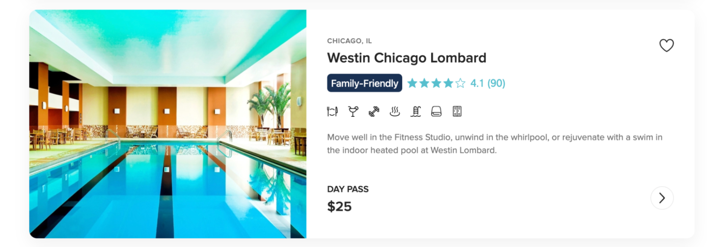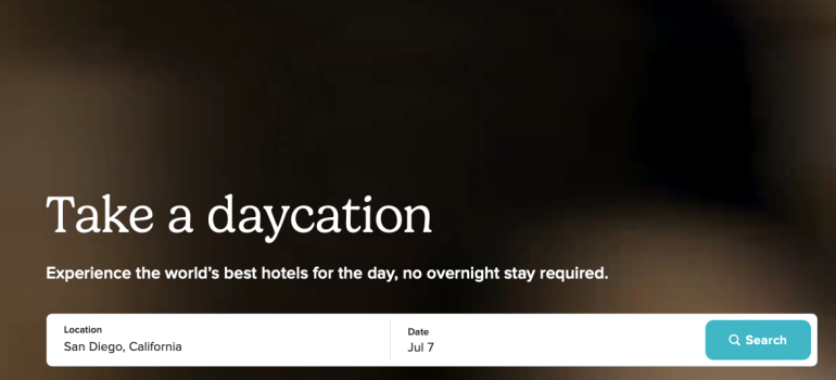 To search for a day pass on the platform, enter a destination and the day you’d like to visit the hotel. You'll see a list of options in the area, which can be filtered by the hotel’s number of stars and list of amenities.