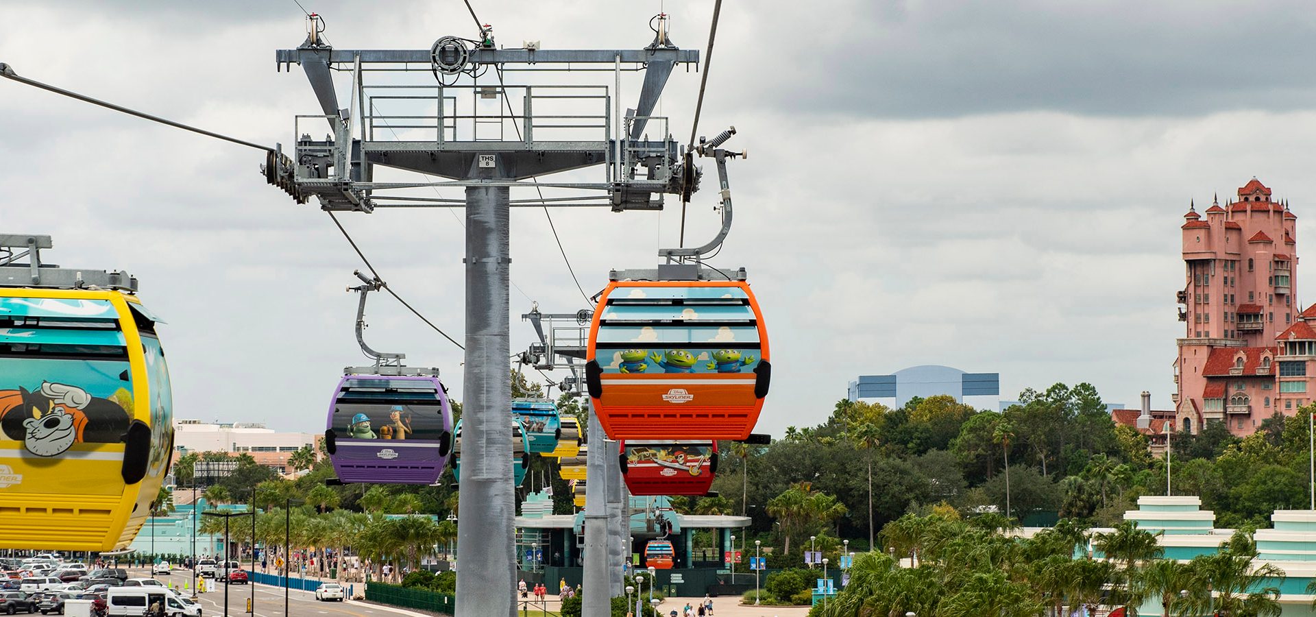 Disney Skyliner is an aerial transportation system that can shuttle you between the Epcot and Hollywood Studios theme parks. (Photo courtesy of Disney)