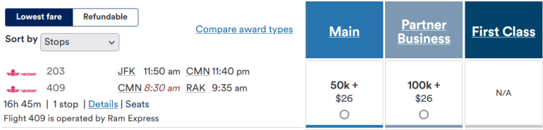 Royal Air Maroc flies frequently to Casablanca, and its membership in the Oneworld alliance means that you can earn or redeem Alaska or American miles for a flight.