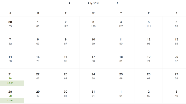 Marriott Bonvoy operates a dynamic pricing model, which means that the number of points you need for a redemption night can change by day. For instance, a stay at The Bellagio Hotel & Casino, famous for its water fountain show and gardens, will set you back 45,000 points for off-peak nights and as much as 145,000 points on peak nights.