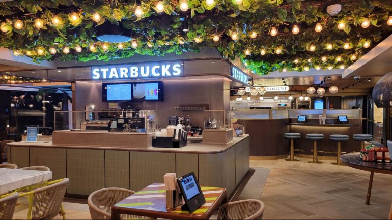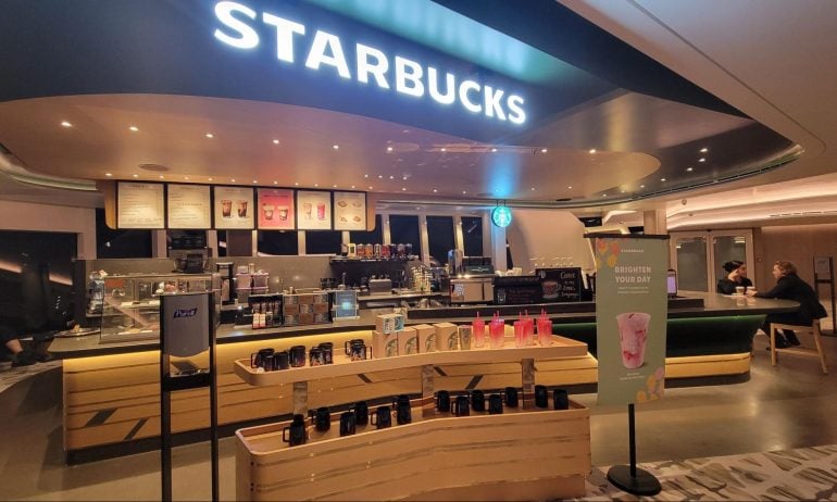 There are even two Starbucks locations that serve up all of the favorites you can find on land.
