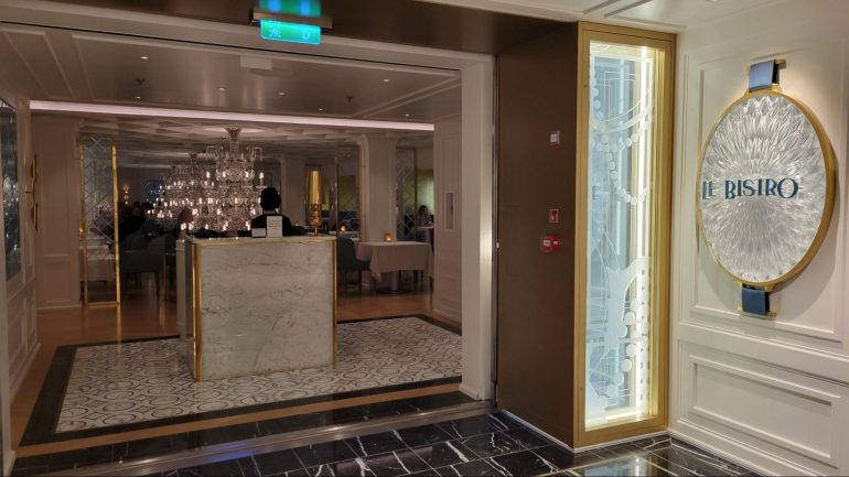 Only a small percentage of specialty dining reservations are available before getting on board so it seemed like everything was booked. It wasn’t. Once passengers are on board, the remaining reservations open up. With a reservation, the dining venue holds your space for 15 minutes and then gives up your table, which we learned the hard way one night when we arrived late. Our table was gone, forcing us to wait about 45 minutes for another one.