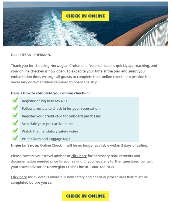 About a day after filling everything out, you can go in and download the eDocs, which serve as your boarding pass. You’ll need either a printed or mobile copy to show at the embarkation point.