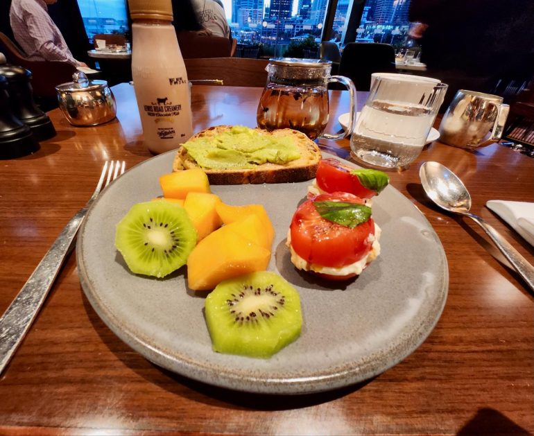 When was the last time your local breakfast buffet came with kiwifruit, a caprese salad, avocado toast and locally produced chocolate milk? I rate this one a 10 out of 10.
