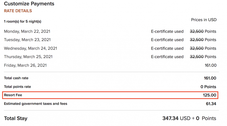 Even if you redeem points or free night certificates for a stay at a resort that charges these pesky fees, your stay isn’t going to be 100% free. Keep in mind that resort fees are charged nightly, which means that the longer your vacation is, the more cash you have to dole out at the end of your trip.