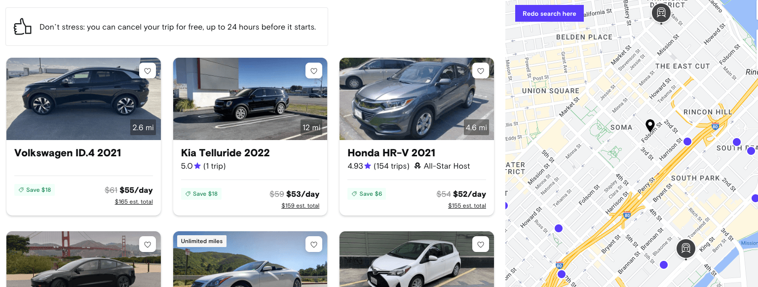 Why we like it: The option to have your car delivered is especially handy — and a potential money saver. We tested Turo on a trip to the Big Island of Hawaii. The trip started at a fancy resort with expensive parking, so taking a cab to the hotel and staying a couple of nights on the resort grounds, sans car, was fine. When it was time to drive to the other side of the island, we had our Turo host meet us at our hotel, so we never had to pay exorbitant hotel parking prices. After the trip, we were able to leave the car at the airport, making drop-off convenient.