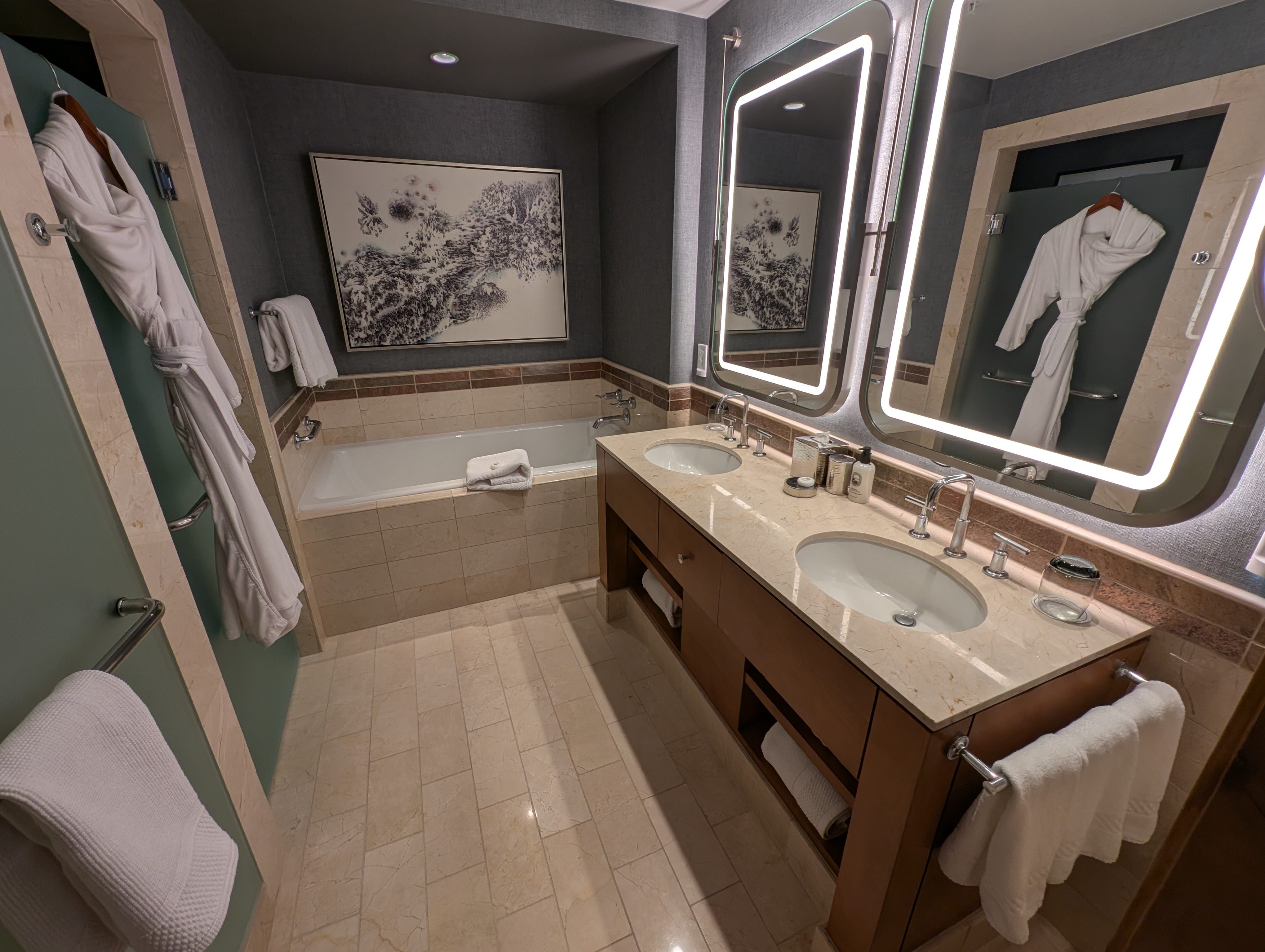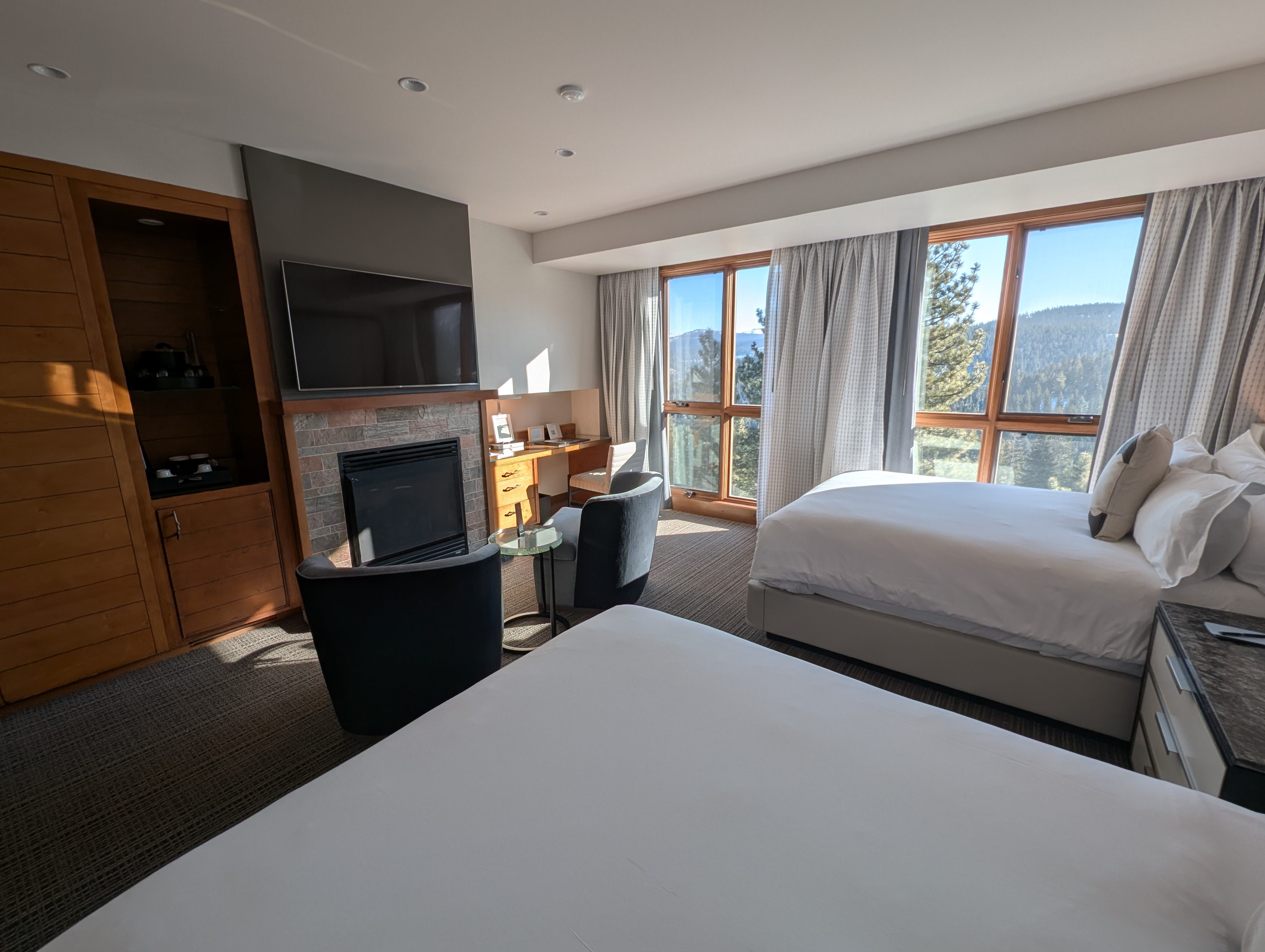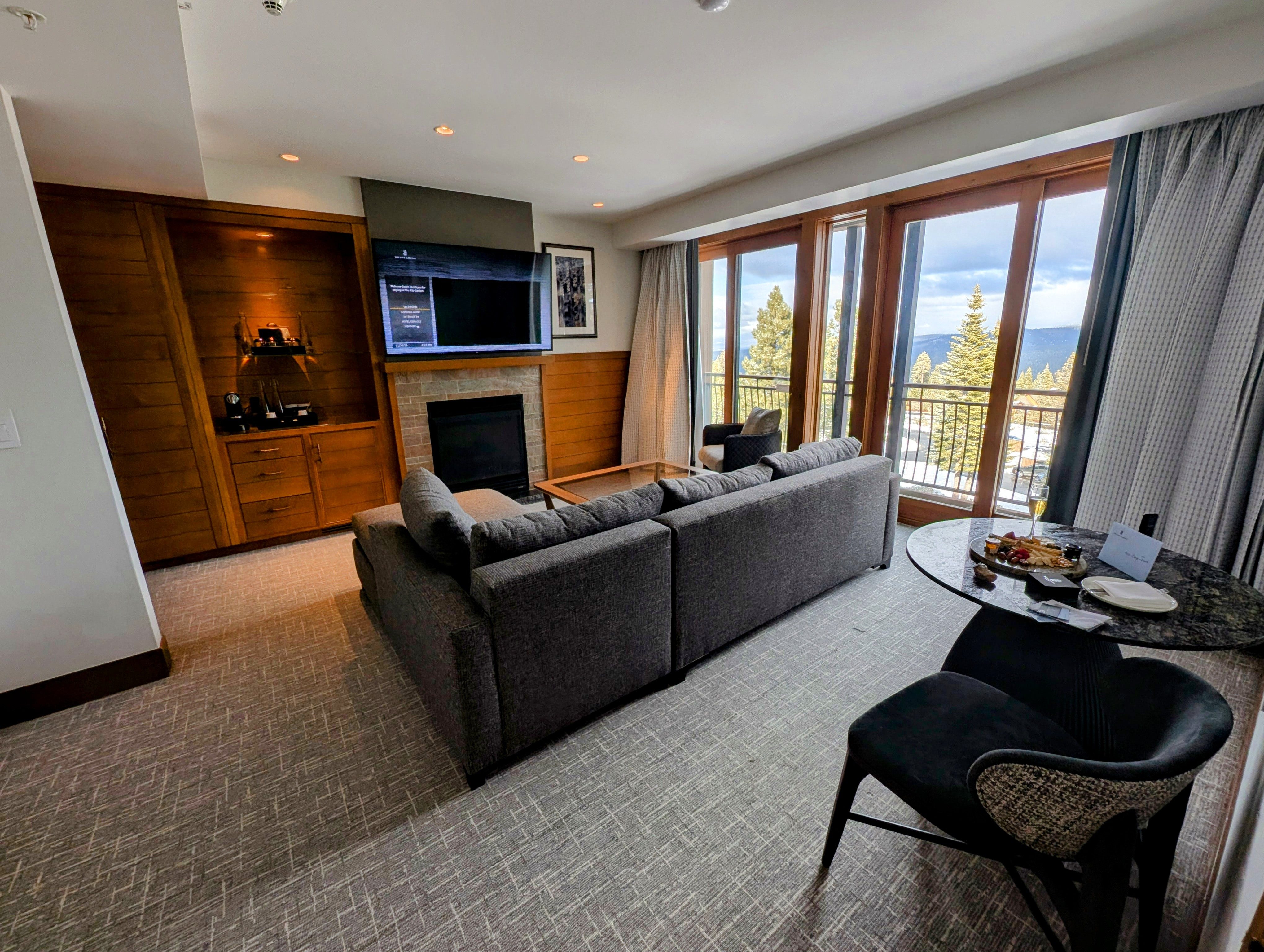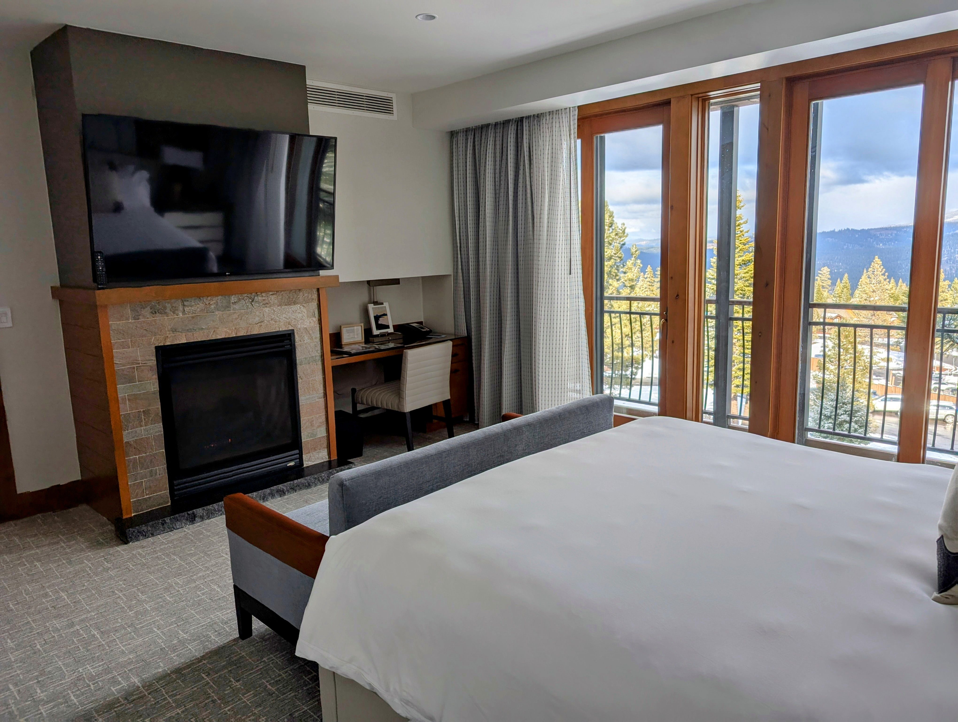 I was booked into a club-level one bedroom suite with mountain views. These rooms feature fireplaces, balconies, a king bed, a king sofa bed and two full bathrooms. The fireplaces really made the room cozy and the view of the Sierra Mountains was absolutely spectacular.