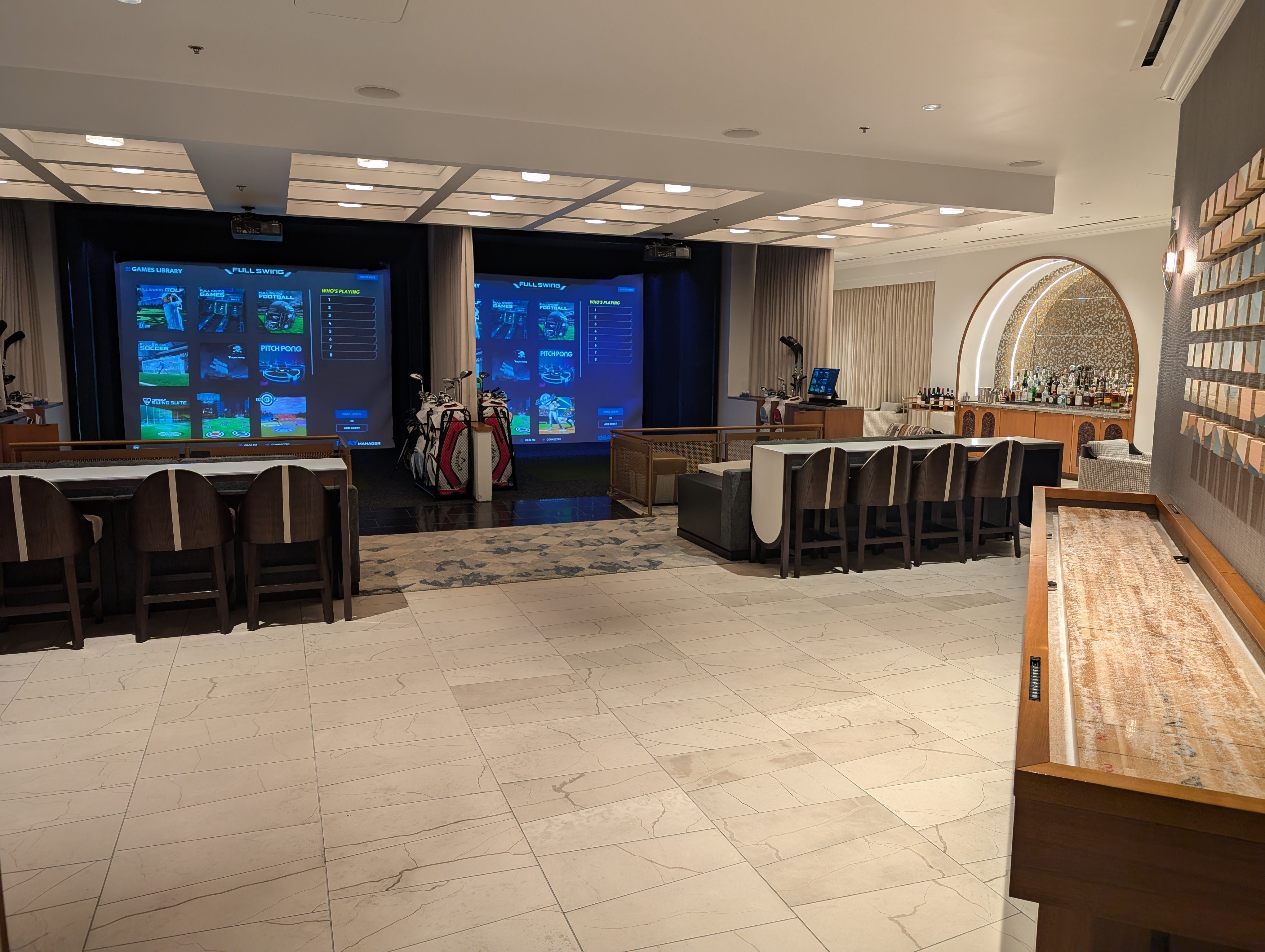 Guests can reserve two on-property Topgolf Swing Suites, each equipped with a variety of virtual golf and non-golf game options. A 90-minute reservation costs $250 for up to 10 guests. For an added cost, you can also order from a casual food and beverage menu.