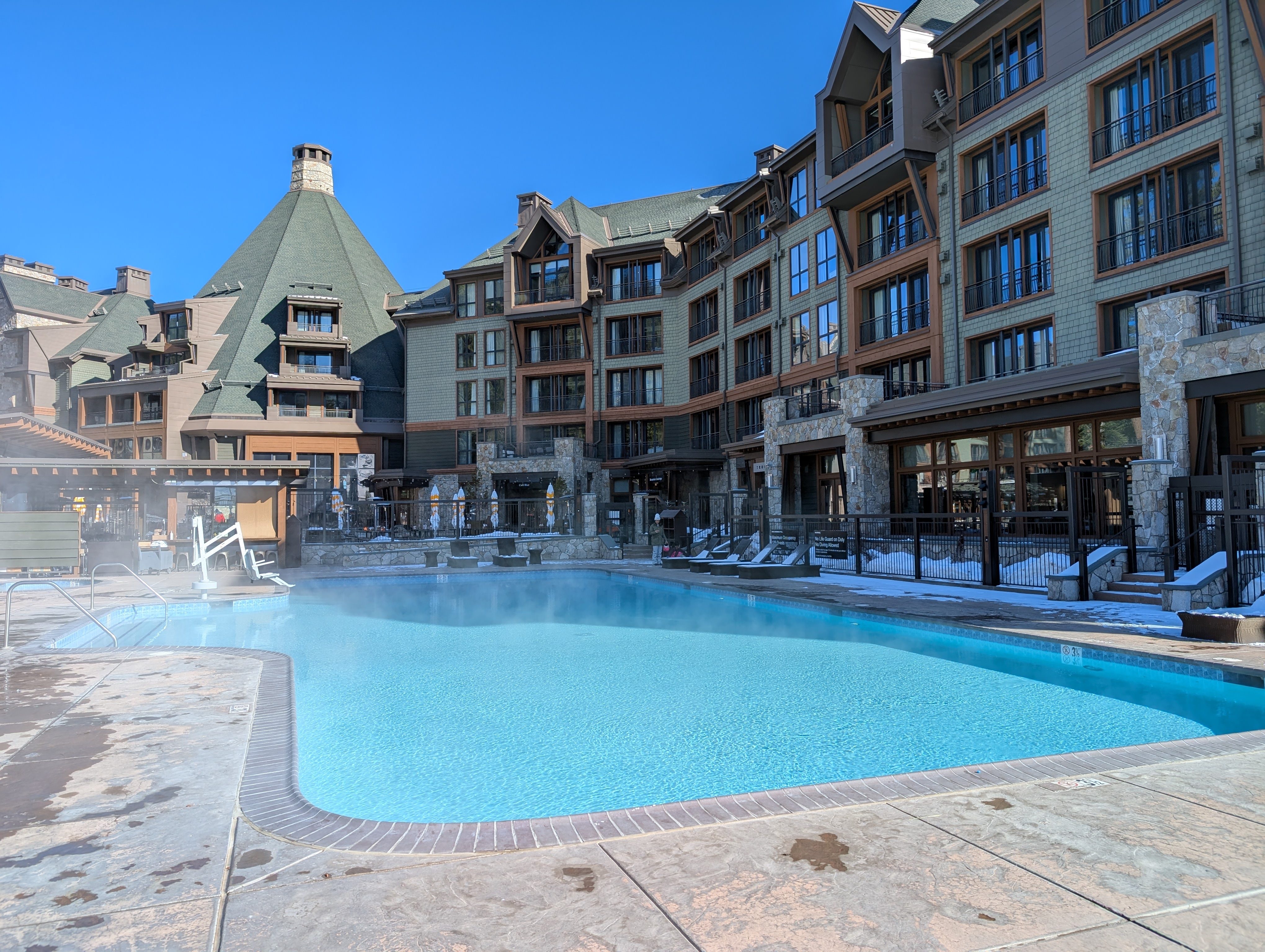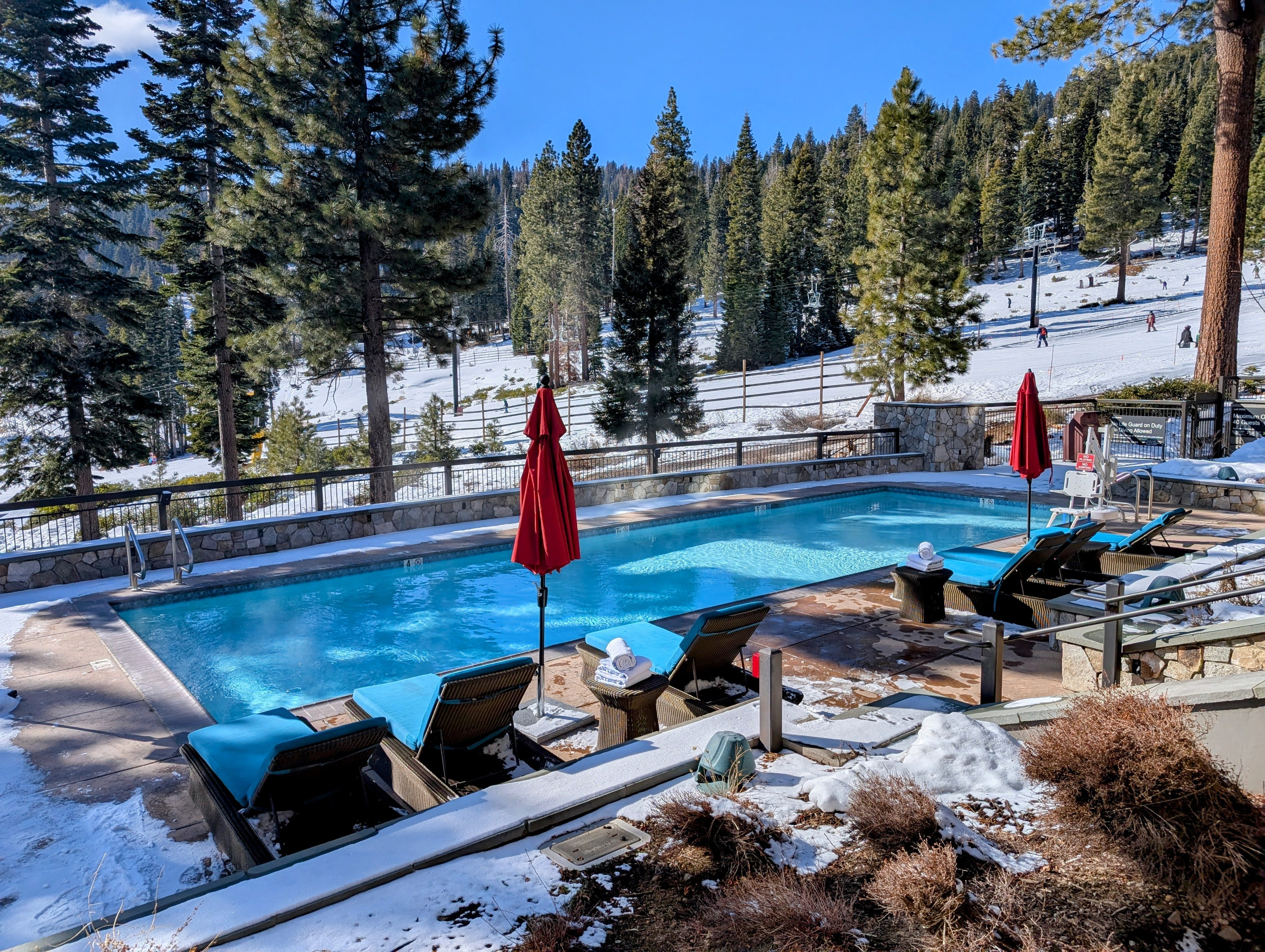 The property features a heated pool and hot tub situated along the Northstar Mountain slopes. I love being in the cold mountain air while submerged in warm water and visited the pool daily.