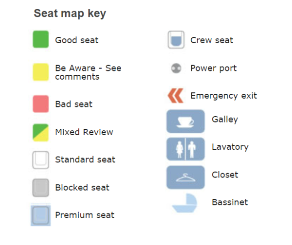 SeatGuru uses a four-colored scale to indicate how desirable a seat is: