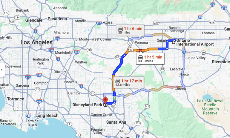 Unless you're able to score a cheap fare, avoid flying into Ontario or Burbank. You risk more traffic back ups and longer commutes because of the distance between these airports and the resort.