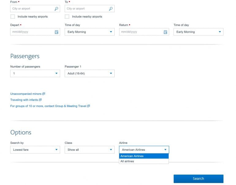 This will take you to a page where you can enter your travel information with the option to select “All Airlines” at the bottom of the page.