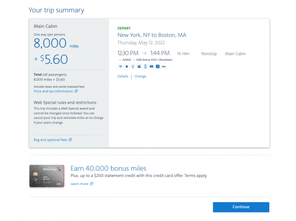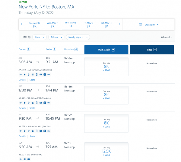 4. Confirm details and select the award flight that you want to book.