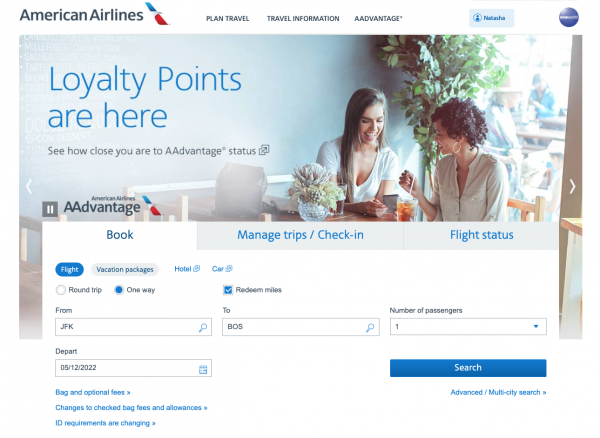 Redeeming miles for American Airlines flights