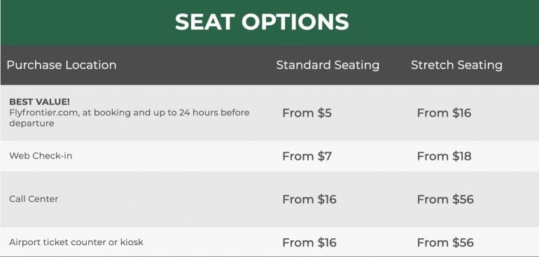 - Frontier will usually charge you to select a seat.