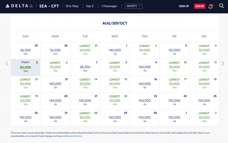 That’s where flexibility comes in. To make things easier, many airlines offer award calendars that let you see which dates and prices are available by month, which can be especially helpful when rooting out hard-to-find premium cabin tickets.