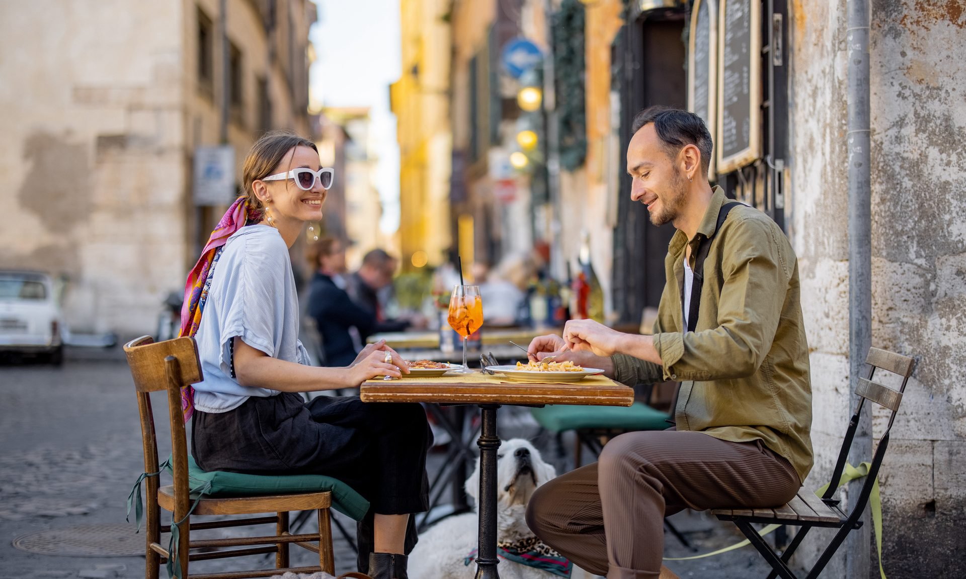 Let’s say your travel companion and you split a perfectly cooked Margherita pizza, a delicious spaghetti Bolognese and wash it all down with a bottle of a nice Chianti at a sit-down restaurant.