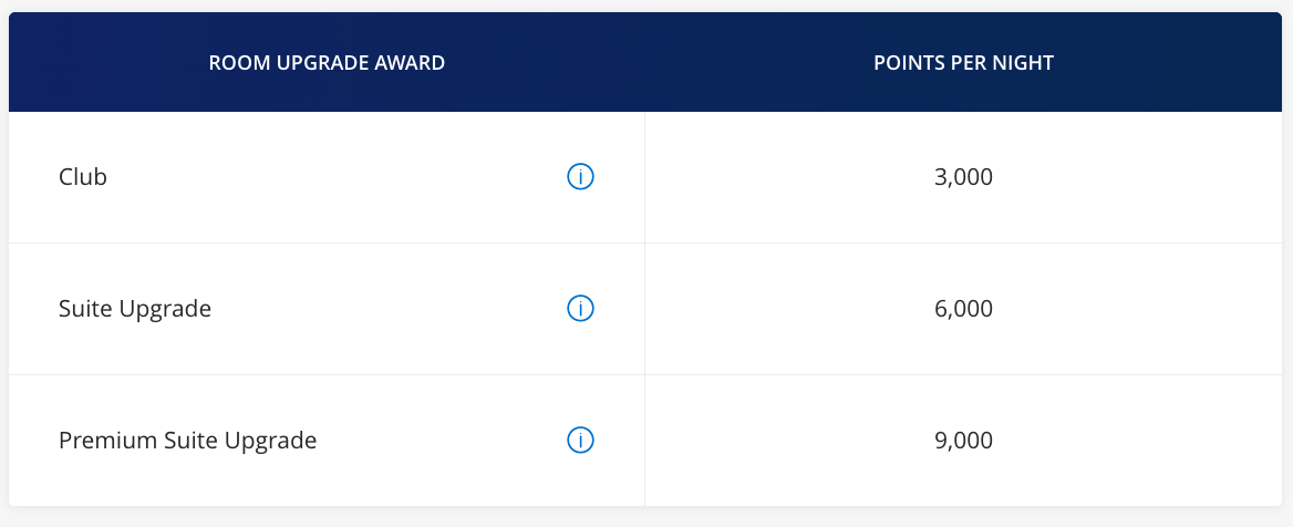 Note that upgrades to suites can cost much more, spanning between 6,000 and 9,000 points per night. If you have a long stay ahead of you, upgrading with points can cost the same as a standard room award. Unless it’s a special occasion, or you have no other use of your points, this might not be the best use of points.