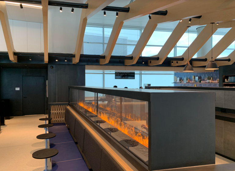 The lounge is designed to be a fast experience for visitors with a one-way flow that brings people in through one entrance and out through a different exit. This helps to prevent bottlenecks, although guests can linger and power up devices if they need to. USB-A and USB-C outlets are available throughout the lounge.