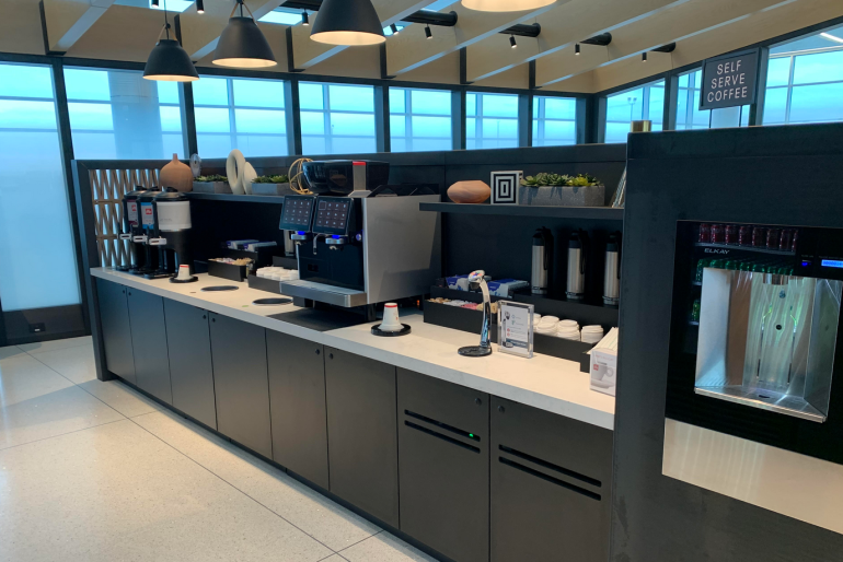 United Club members and eligible international travelers can stop into the lounge to grab fresh sandwiches, salads, snacks, fresh fruit, soft drinks and juice, coffee or tea, and water to take “guilt-free” for their flights. This type of lounge is sure to please those that are rushing between flights, but still want to grab a bite to eat or drink along the way.